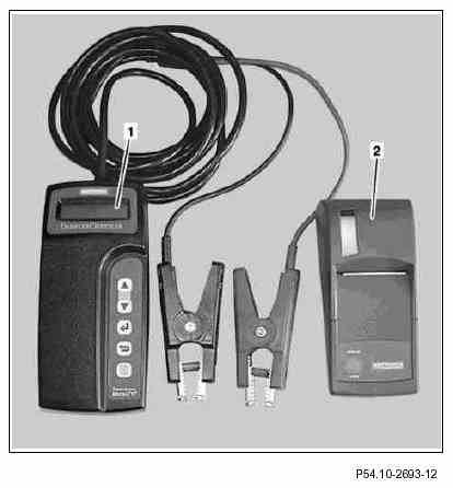 - Battery removed: reduce increased voltage using a suitable volt/amp(s) tester (load battery for approx. 60 s with 20 A to 30 A amps).