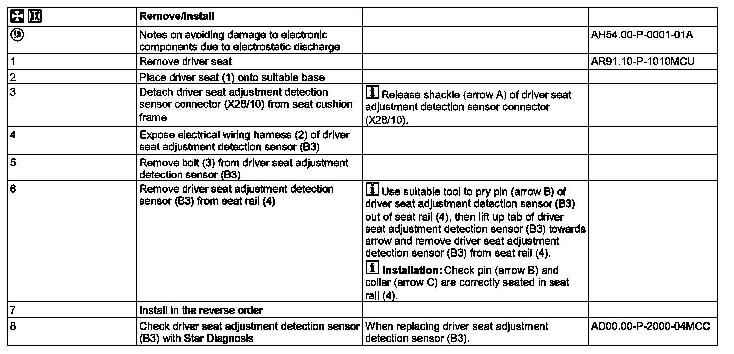 B3 Driver seat adjustment detection sensor