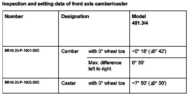 The camber is adjusted by moving the front axle (1) to the right or left.