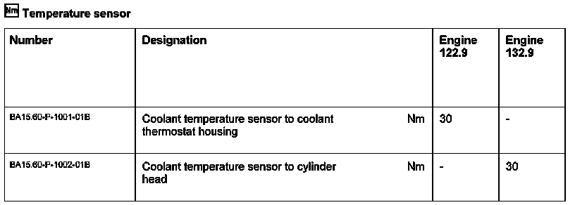 Coolant Temperature Sensor/Switch (For Computer): Specifications