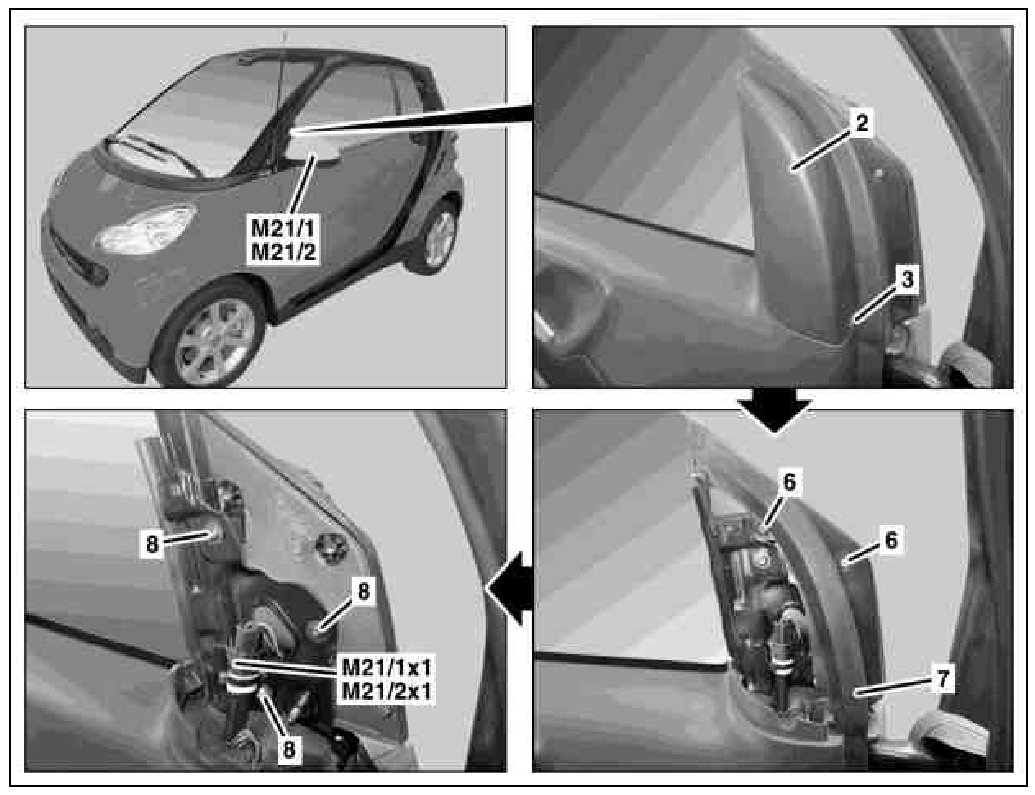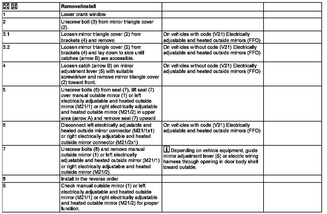 M21/2 Right electrically adjustable and heated outside mirror (with code (V21) Electrically adjustable and heated outside mirrors (FFO))