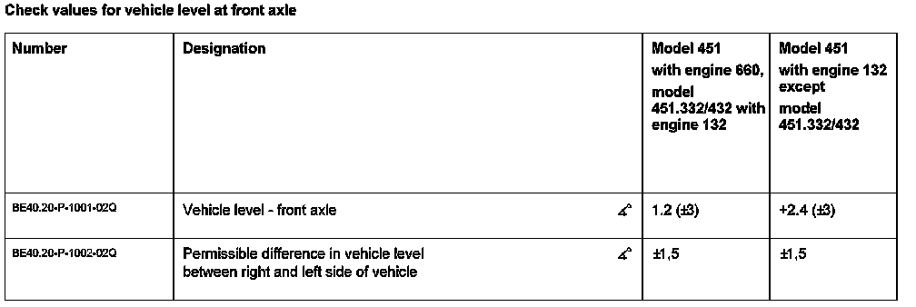 Vehicle Level at Front Axle