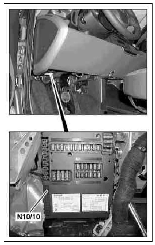 The SAM control unit is located in the footwell on the passenger side.