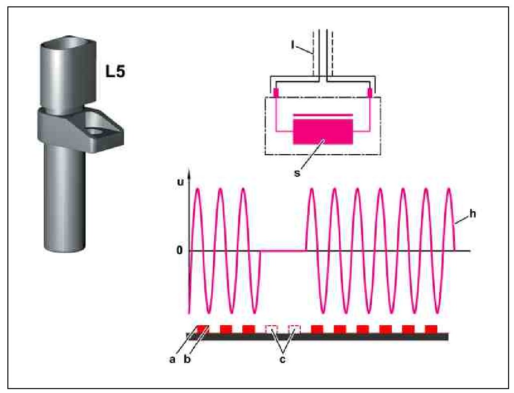 The front edge of a tooth on the clutch plate generates a positive voltage pulse and the rear edge generates a negative one. The distance from the positive to the negative voltage peak corresponds to the length of a tooth.