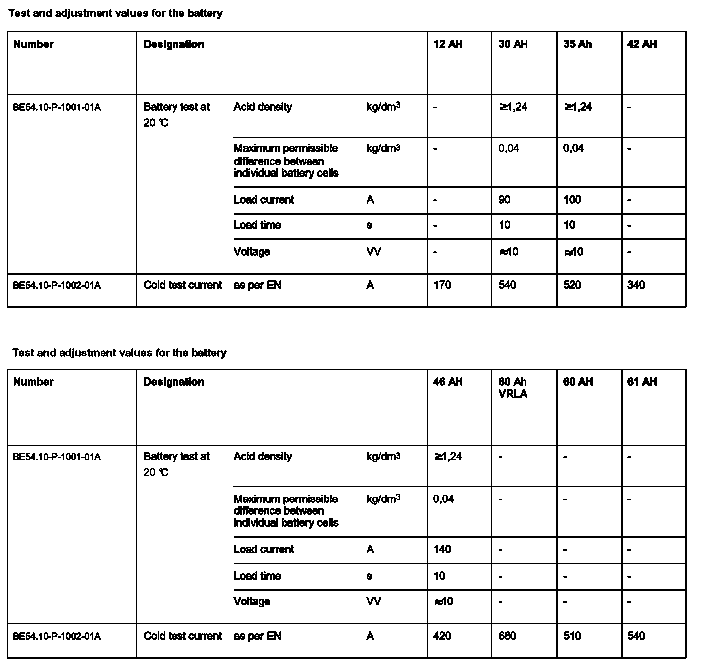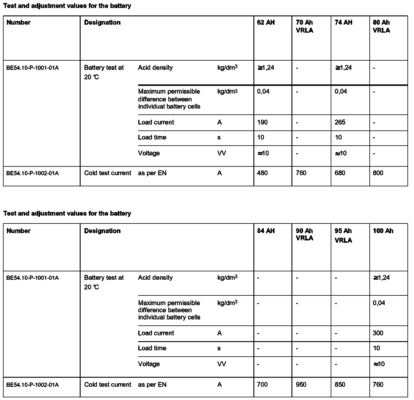 BE54.10-P-1000-01A Test Values For Battery, Voltage Supply