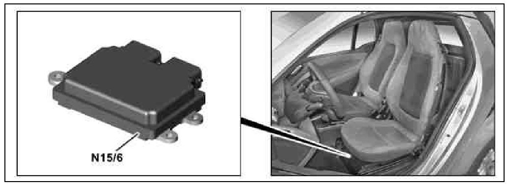 The automated manual transmission control unit is located in the passenger compartment under the driver seat.