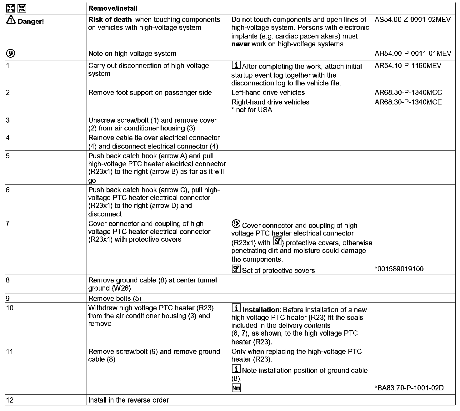 AR83.70-P-8001MEV Remove/install High-voltage PTC Heater