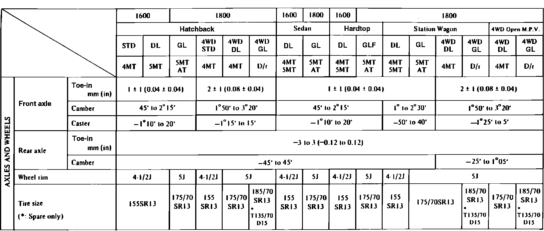 Hatchback 2WD F4-1595cc 1.6L
