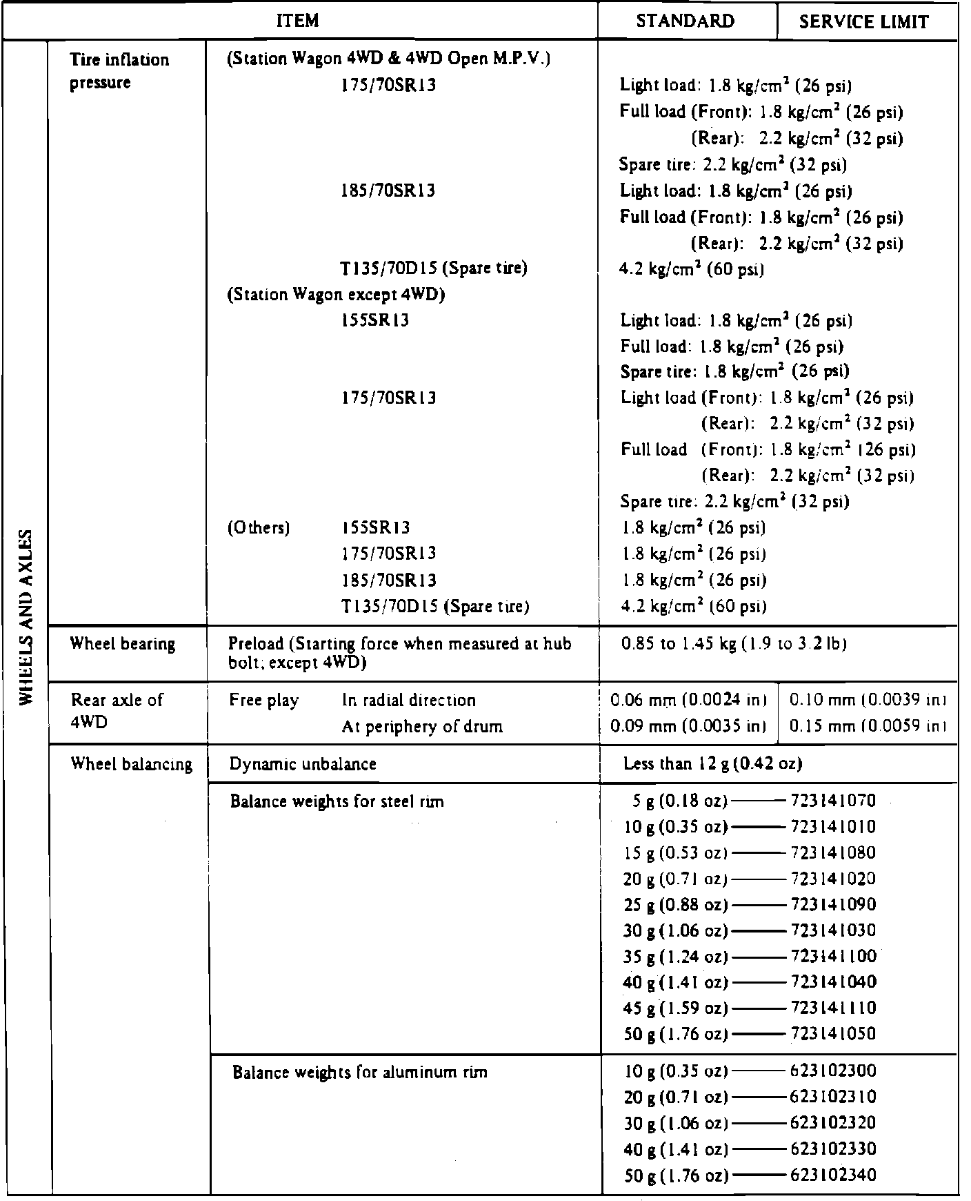 Wheel And Axle Service Data: