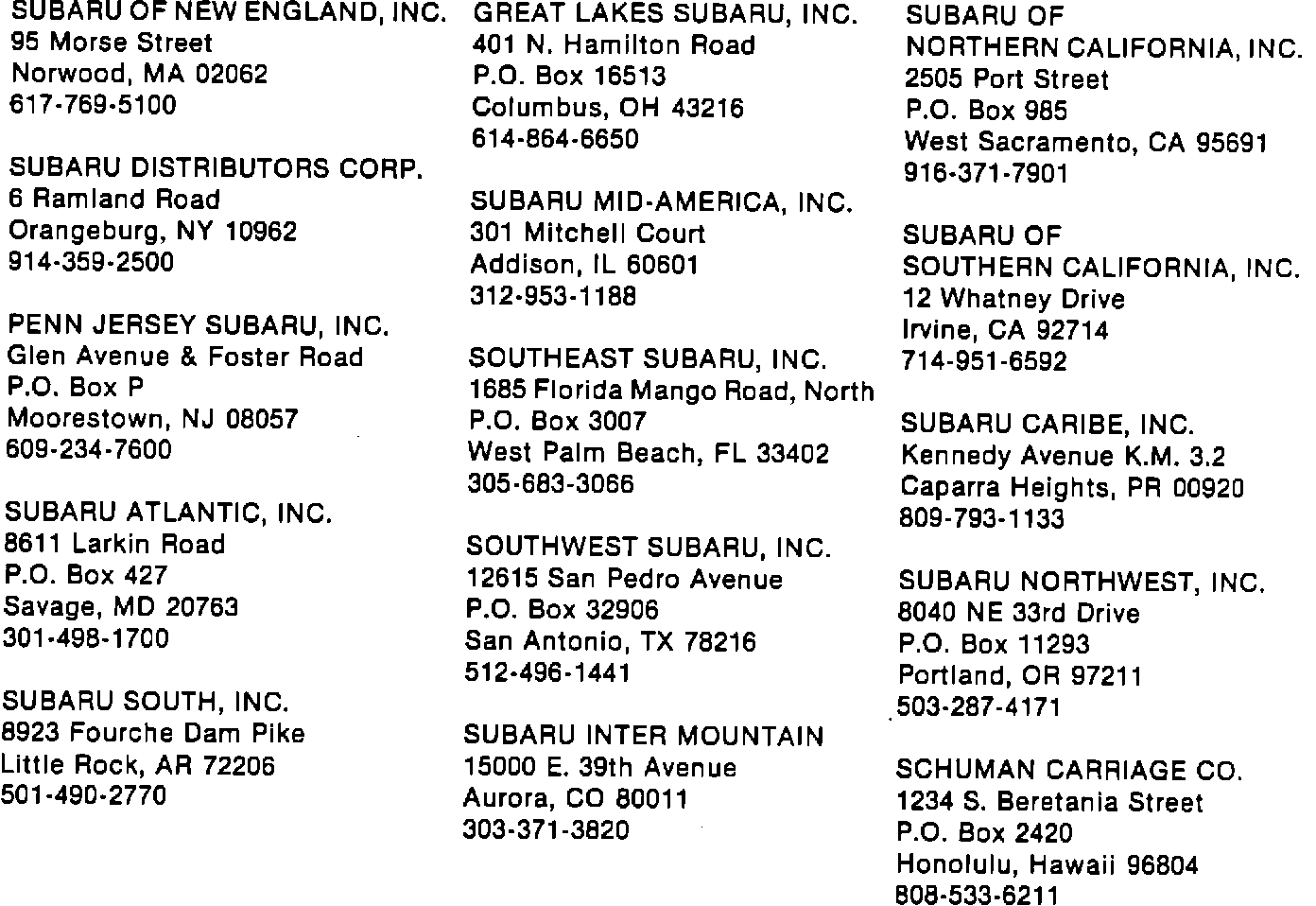 Subaru Distributors