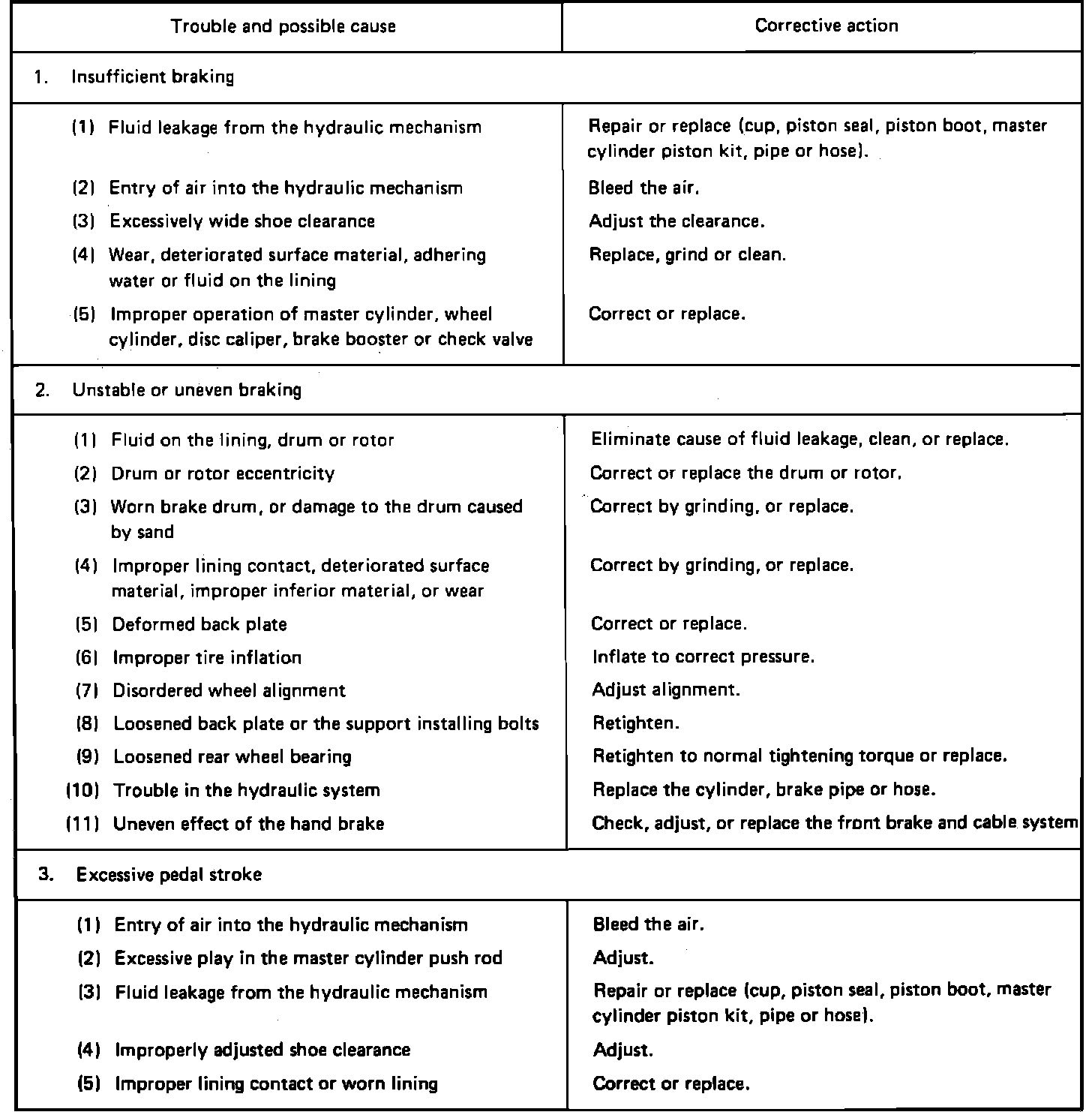Fig. 1 Hydraulic Brake System Troubleshooting Chart (Part 2 Of 2):