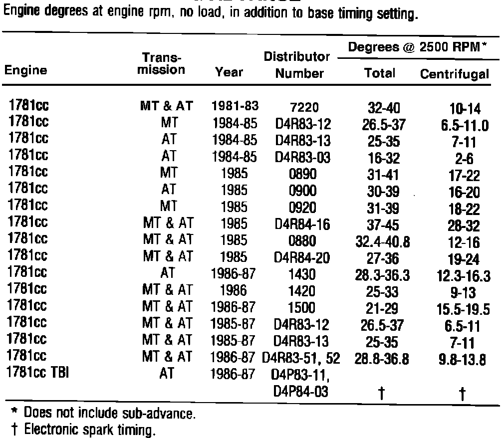Fig. 1 Distributor Timing Advance Specifications: