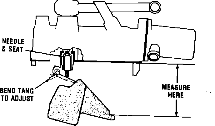 With the bowl cover inverted and the float resting on its own free weight, the distance from the bowl cover gasket to the notch on the outer end of float should be as specified. Adjust by bending float arm.