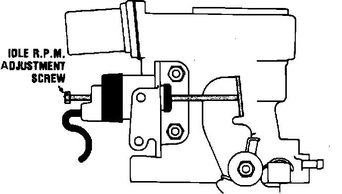 With the choke fully open, turn the adjusting screw clockwise until it just contacts the throttle lever, then continue one complete turn. This adjustment should be made before pump and metering rod adjustment.