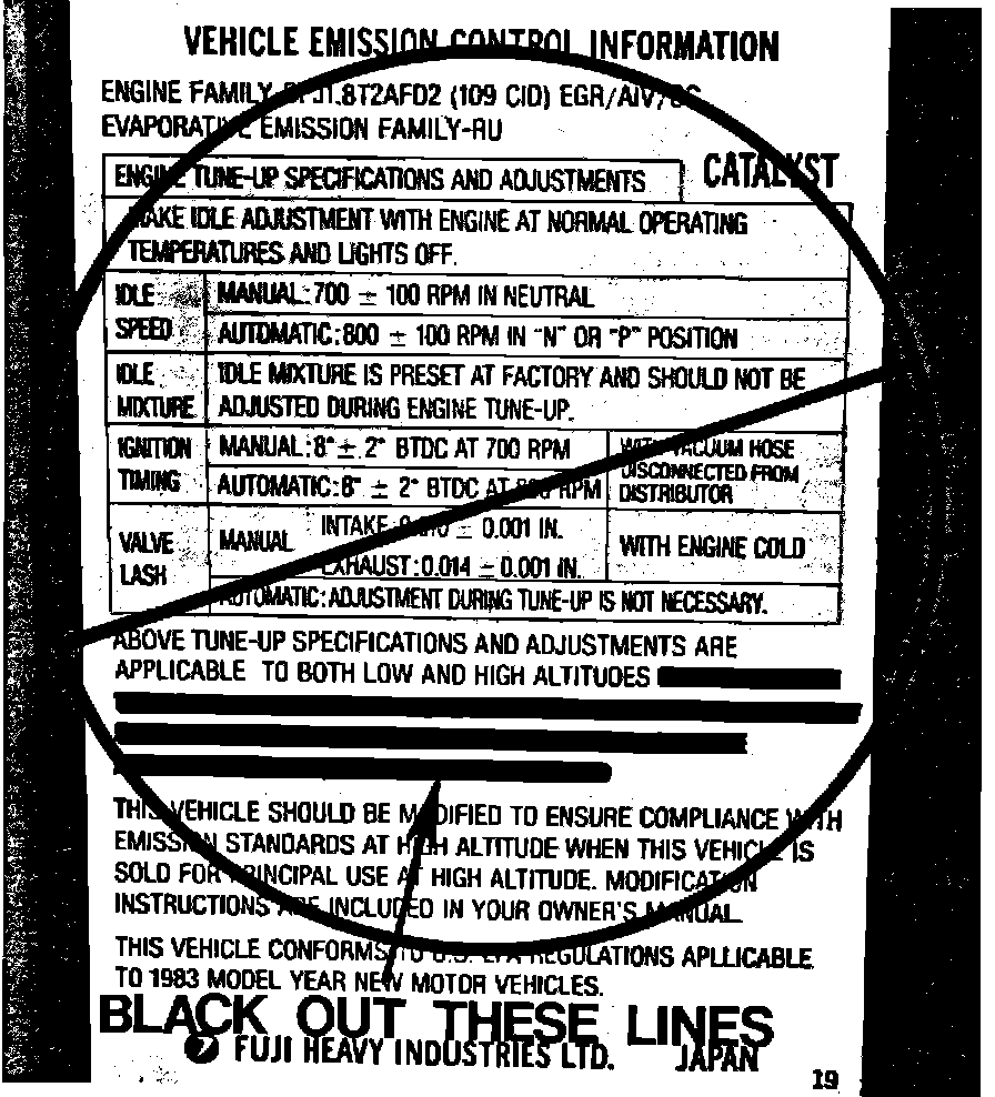 If you should encounter a vehicle with an incorrect label (See Figure 1), please black out the incorrect statement with a magic marker.