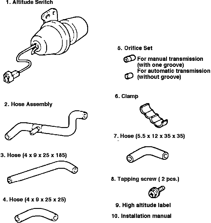 NOTE: High-altitude kits vary with the type of vehicle. Prior to installation, be sure to read the instruction manual supplied with the kit thoroughly.