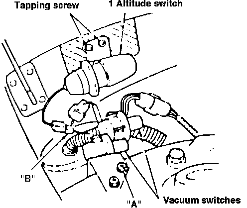 "Modification of 1983 model year U.S. cars with low-altitude/high-altitude specifications."General The 1983 U.S. vehicles intended primarily for use in high-altitude areas must be equipped with new high-altitude kit contained the altitude switch or the altitude compensator. The high-altitude kit installation procedure is as described below. In addition, the procedure for remodification of vehicle from high-altitude specifications to low-altitude specifications is also described.
