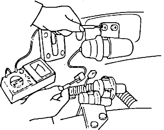 2) As shown in Fig. 7, check continuity between the altitude switch connector pin and the tapping screw securing to the vehicle body, using a tester (ohms range).
