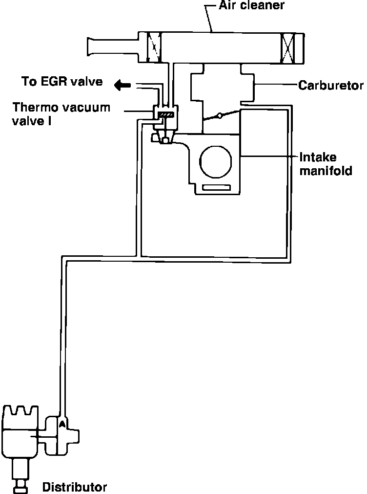 The ignition control system, Fig. 15, reduces HC, CO, and NOx emission during all operating conditions. Actual ignition timing is controlled by the combination of a centrifugal advancer and a vacuum controller on the distributor.