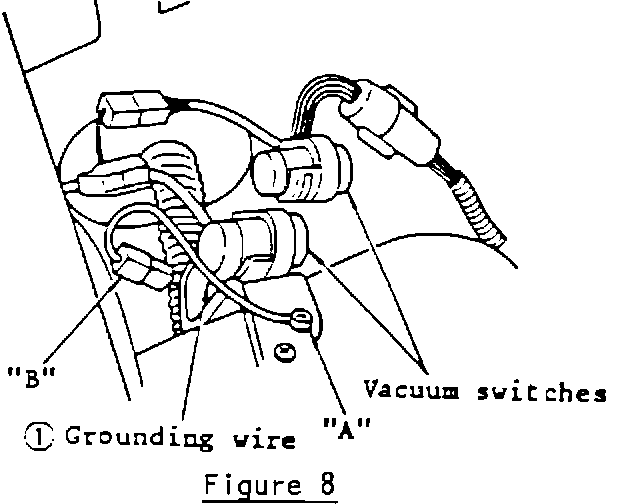 a) Tighten the grounding wire (1) with the bolt ("A" in Figure 8.) holding the vacuum switch bracket to the body.