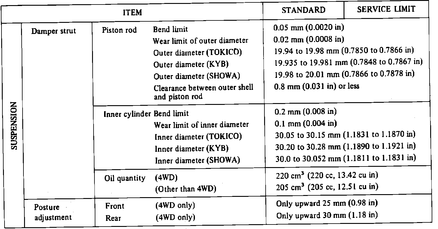 Suspension Specifications: