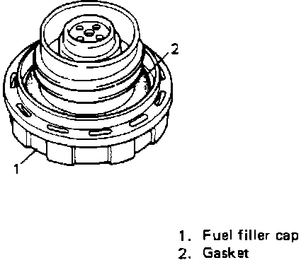 1. Remove cap, and check gasket for even filler neck imprint, and deterioration or any damage. If the gasket has deteriorated or split, replace cap.