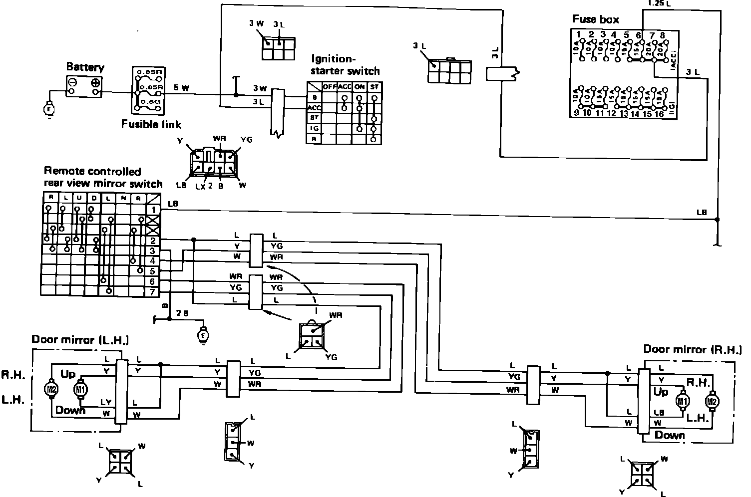Fig. 36 Power Remote Mirror Wiring Circuit: