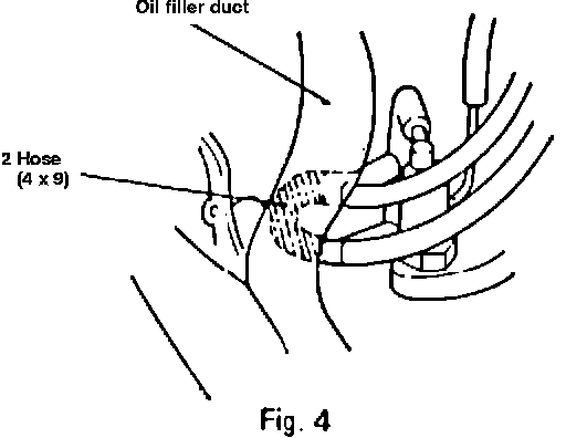 * (2) Replacement of EGR leak orifice (Manual transmission vehicle only) Remove the hatched positioning hose as shown in Fig. 4, and connect the hose (4 X 9) (2) (which contains an orifice) in the kit to the same position as the removed hose.
