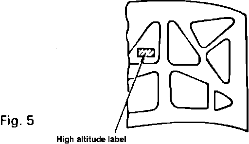 3) Remove the high-altitude label from the reverse side of the engine hood. (See Fig. 5.)