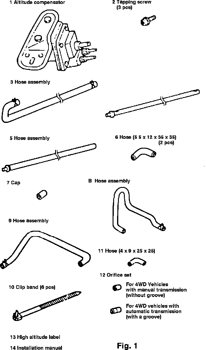 NOTE: High-altitude kits vary with the type of vehicle. Prior to installation, be sure to read the instruction manual supplied with the kit thoroughly.