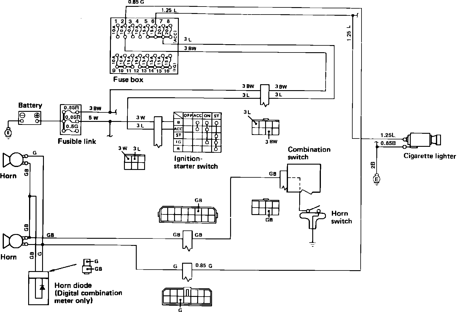Fig. 19 Cigarette Lighter & Horn Wiring Circuit: