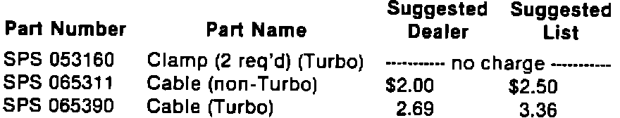2. Turbo vehicles - equal to 0.3 hours multiplied by your current hourly warranty labor rate. This covers the inspection of the cable and the installation of two (2) clamps (SPS 053160).