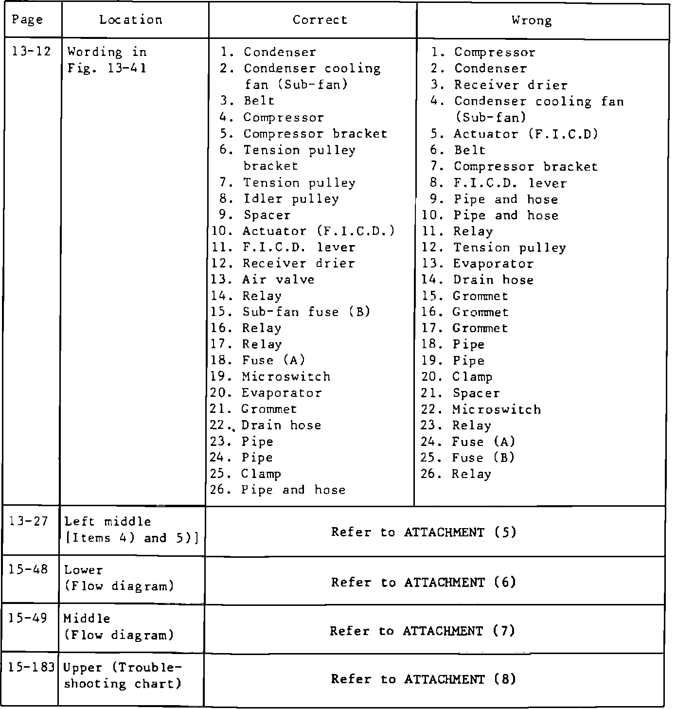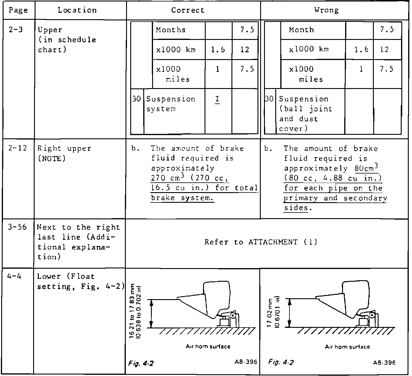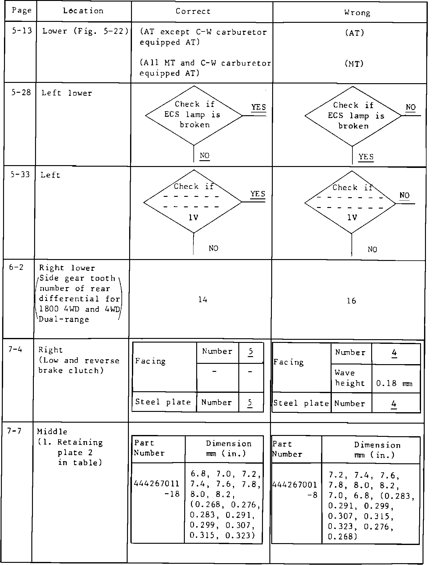 Fuji Heavy Industries, Ltd., has informed us of the necessity for a number of corrections to the 1983 Subaru 1600/1800 Service Manual (MSA-116). The pages of the Subaru Service Manual, MSA-116 require revisions.