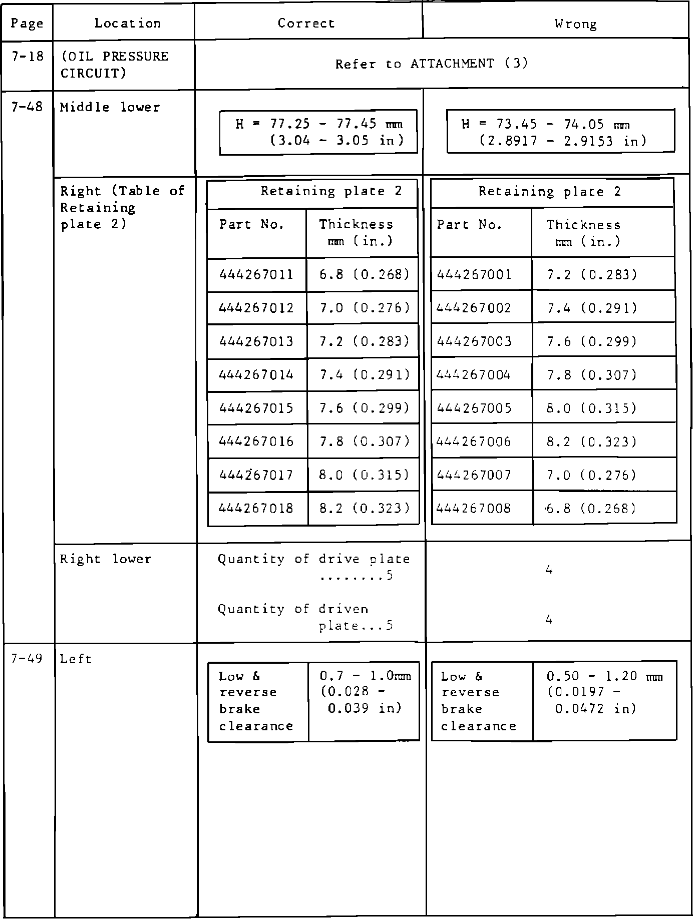^ In case that the oil clearance of crankshaft bearings does not reach the limit and the engine knocking noise is generated, select under size bearings in suitable size to minimize the oil clearance within the standard range as shown in the table (on page 3-57).