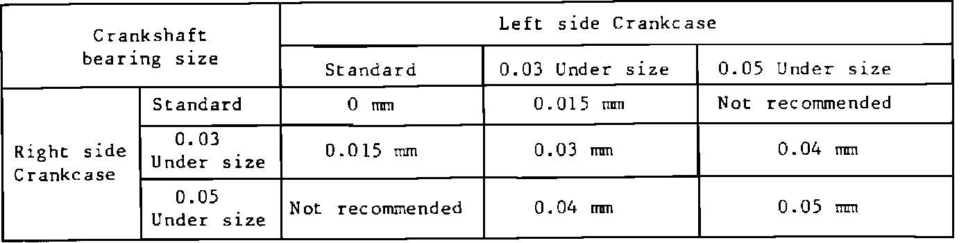 a. When selecting crankshaft bearings, the following combination can be made as well as using same size bearings for both right and left crankcase halves: