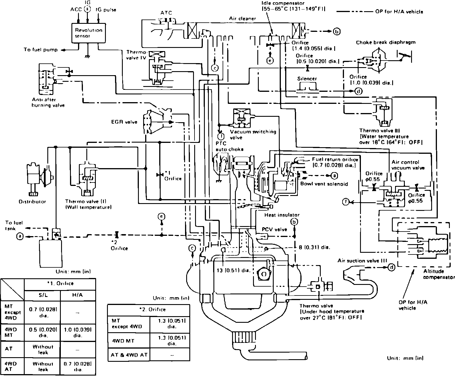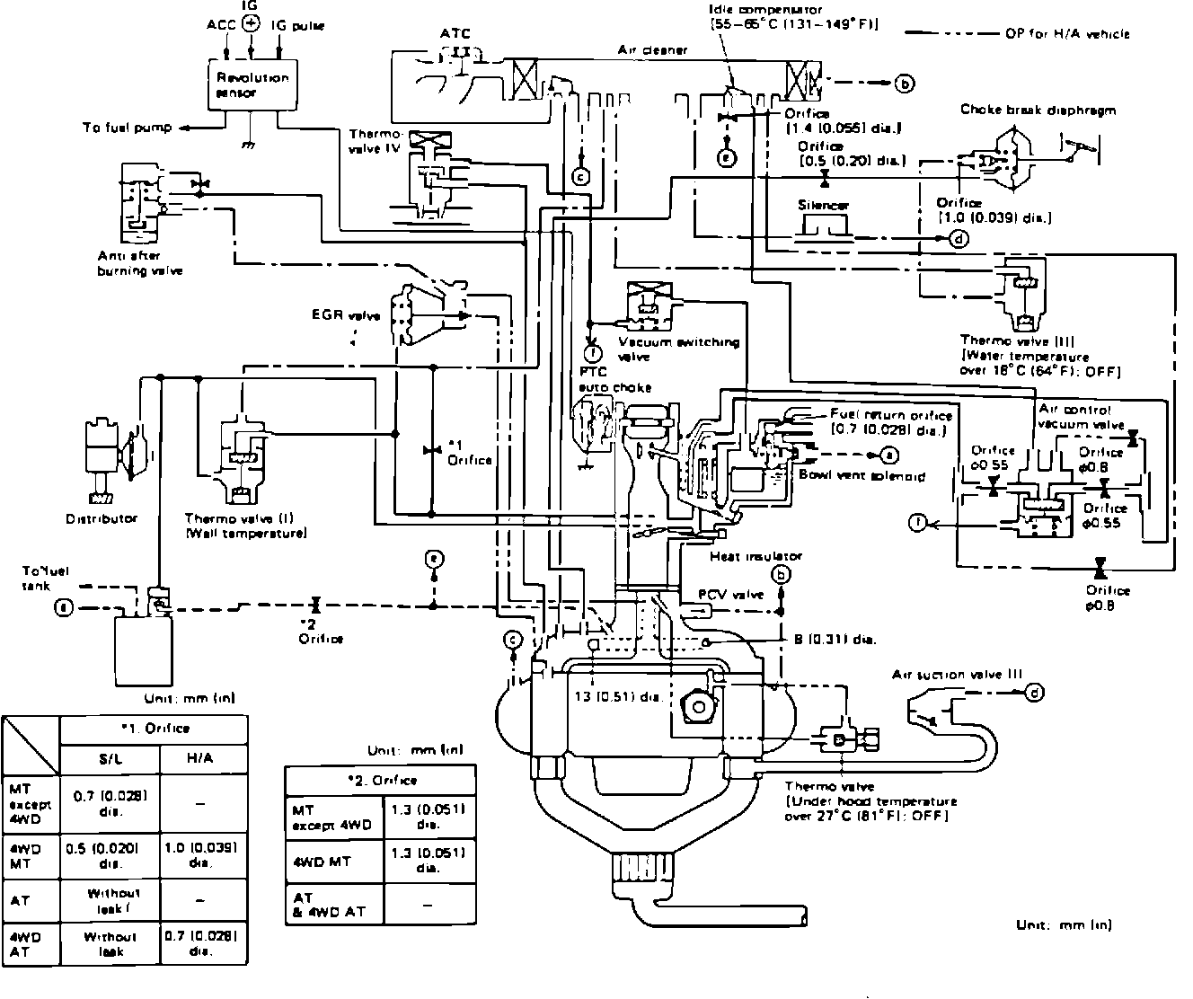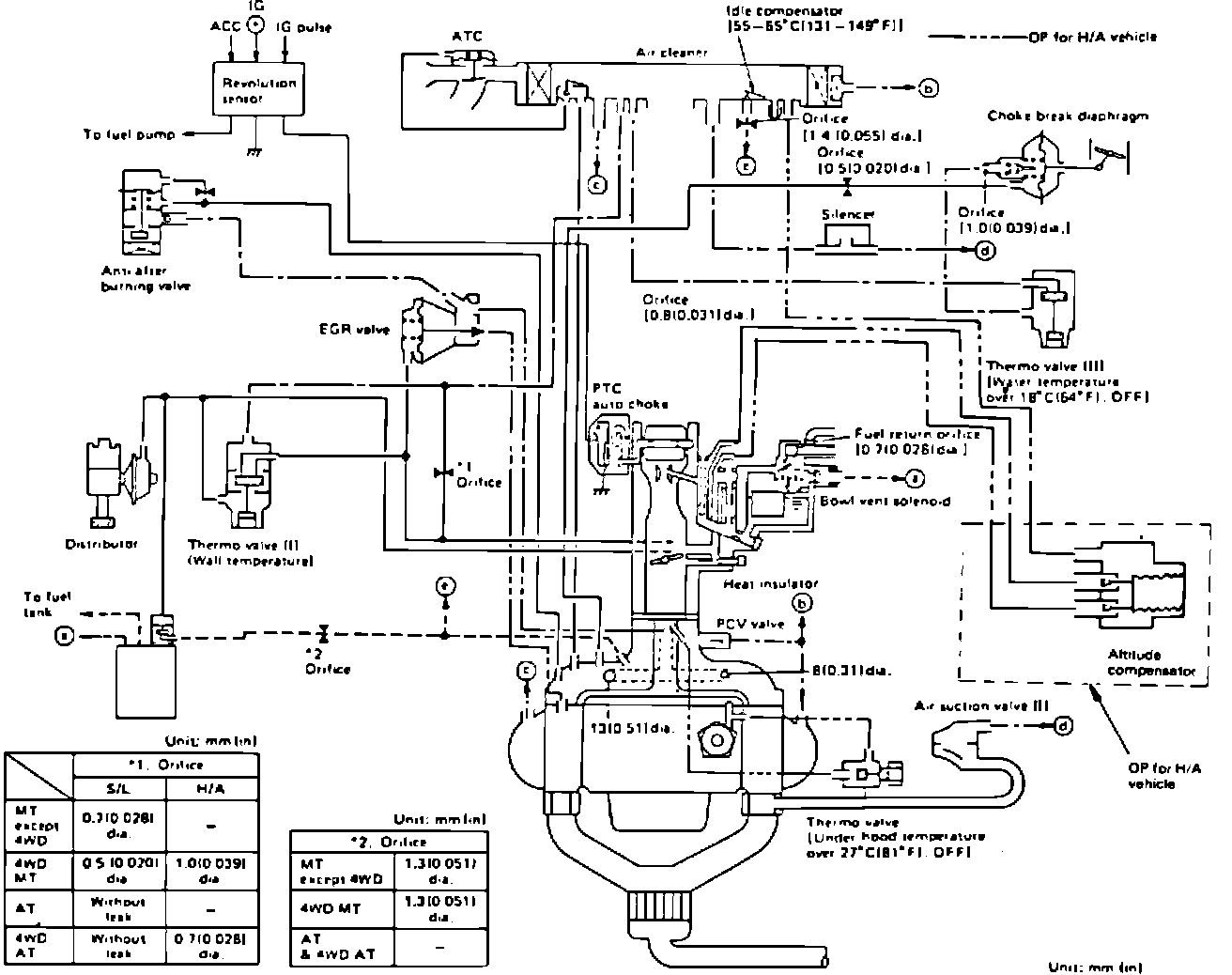 2) Canada Models and 4WD of Non-California Models (Hitachi Carburetor)