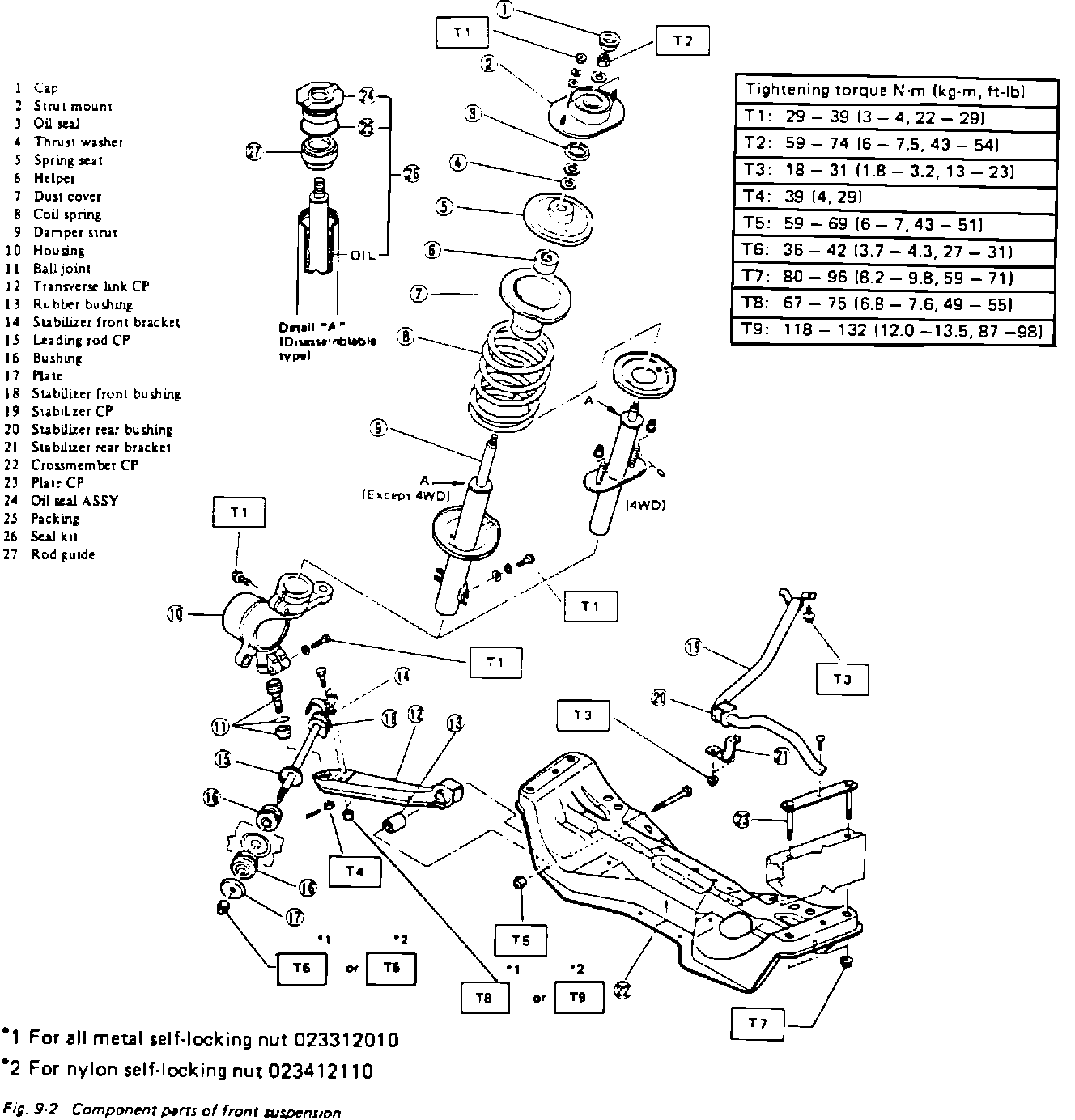 For all 2WD vehicles, damper strut has been modified from around December, 1982 production. There is interchangeability between new undisassemblable type damper strut and old disassemblable type one. Never disassemble the undisassemblable type one.