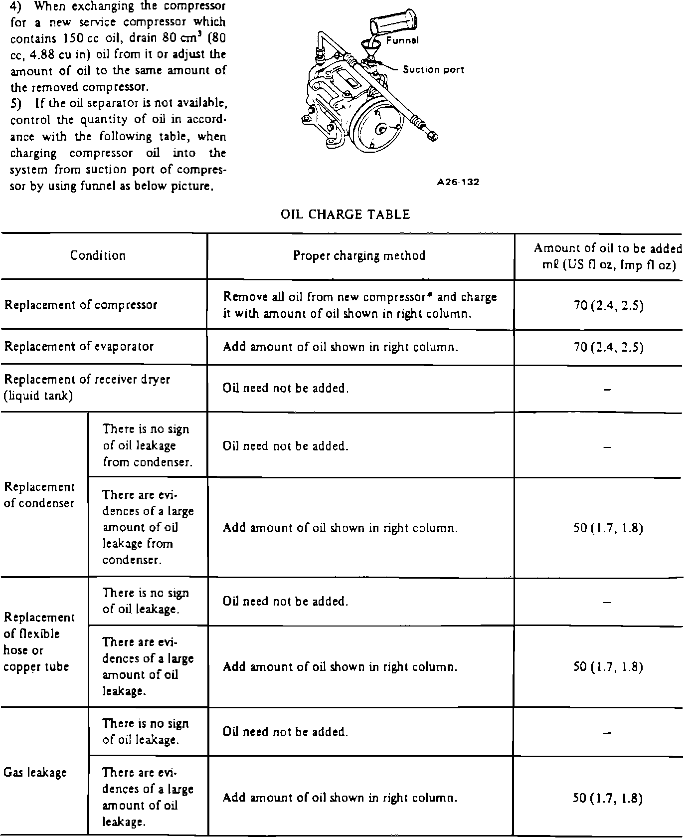 When replacing two or mare of the parts indicated in the above chart, follow each instruction under the proper charging method column for the proper amount of oil to be added.