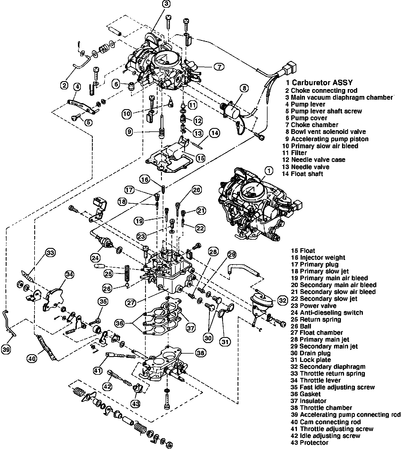 Fig. 1 Exploded view of Hitachi carburetor.: