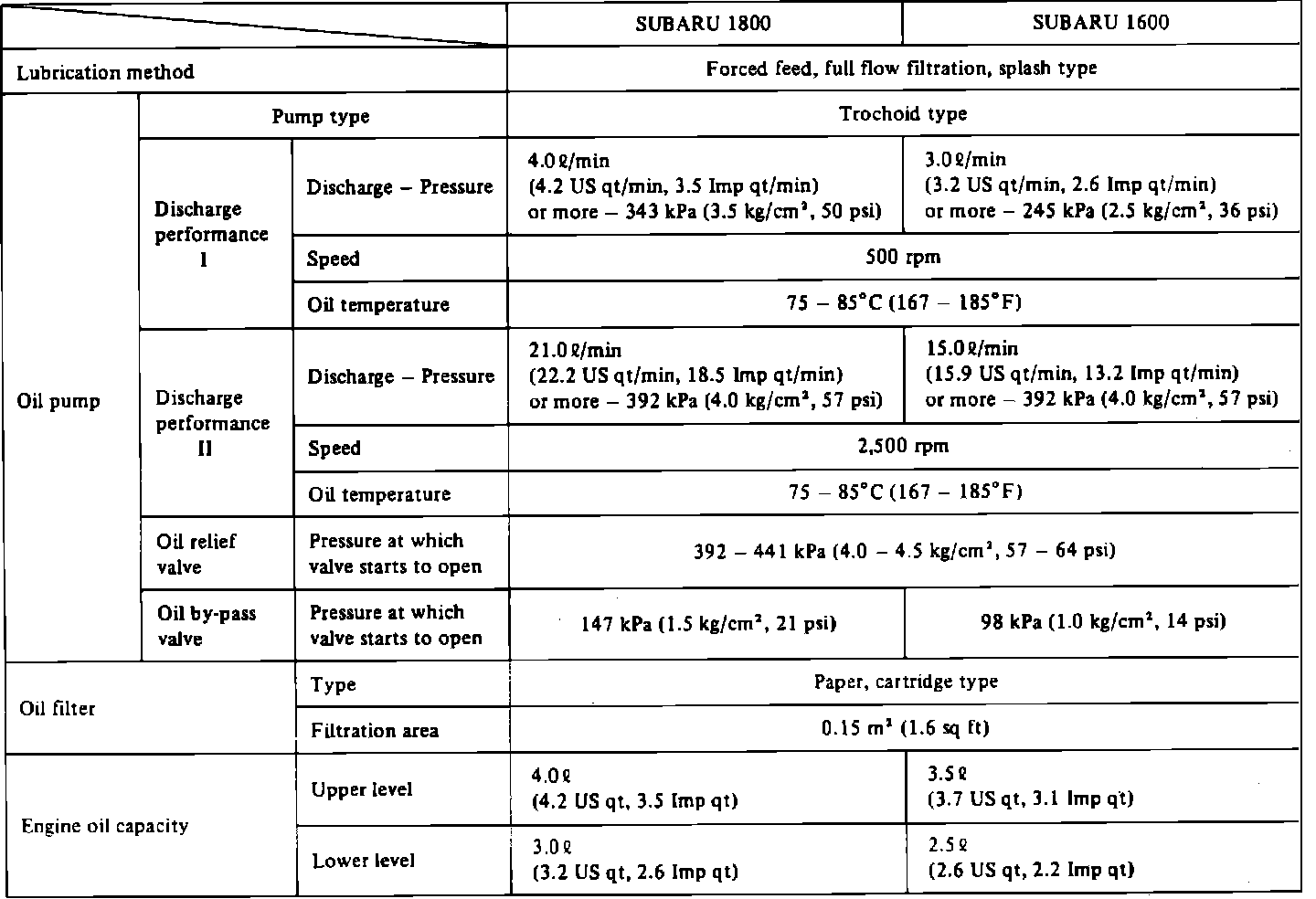 LUBRICATION SPECIFICATIONS