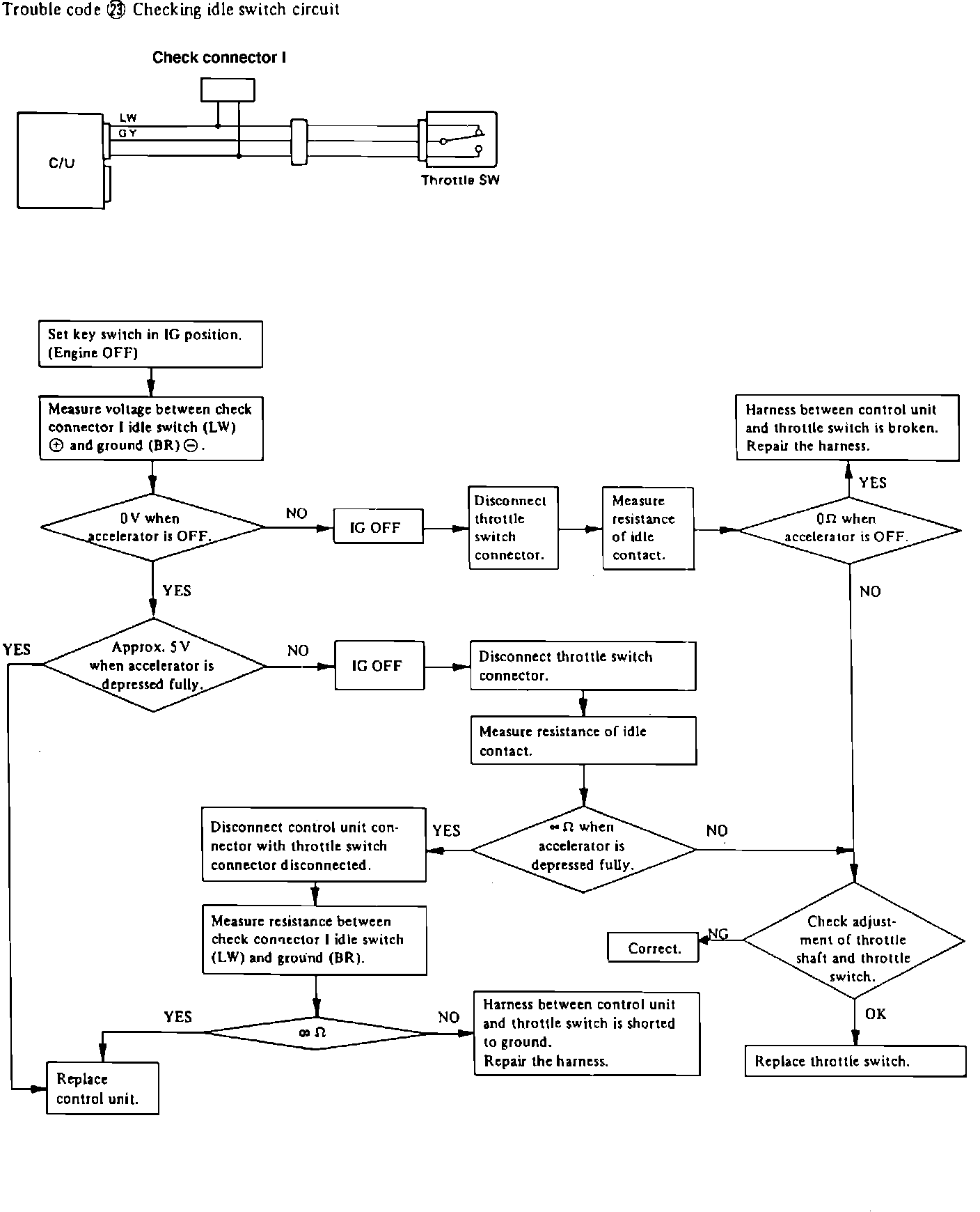 Fig.11 EGI system troubleshooting chart. Trouble code 23. Checking idle switch circuit.: