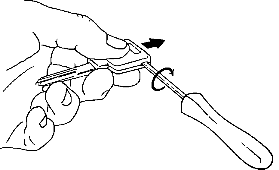 1) Holding the key with the Subaru Star logo upward, insert a small straight blade screw driver into the slot provided on the right hand side of the key light (See Figure 1).