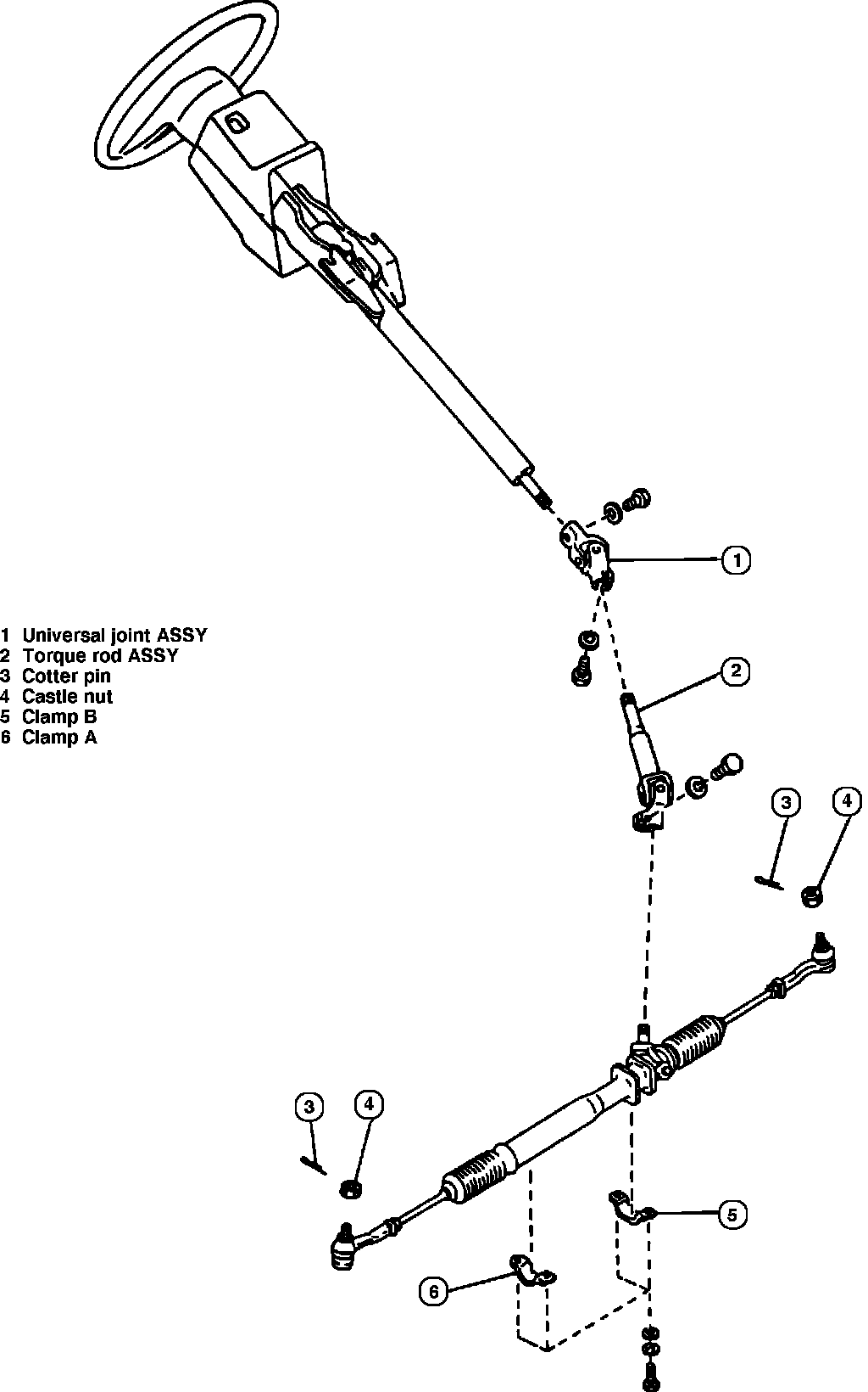 Fig. 3 Exploded view of steering column. 1985 models w/manual steering: