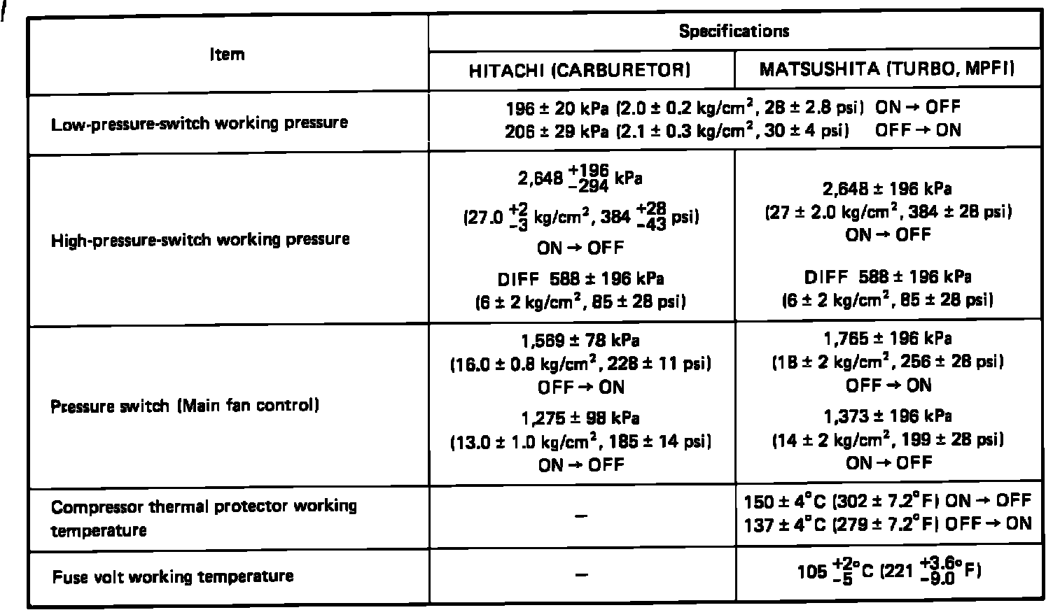 Pressure Specifications: