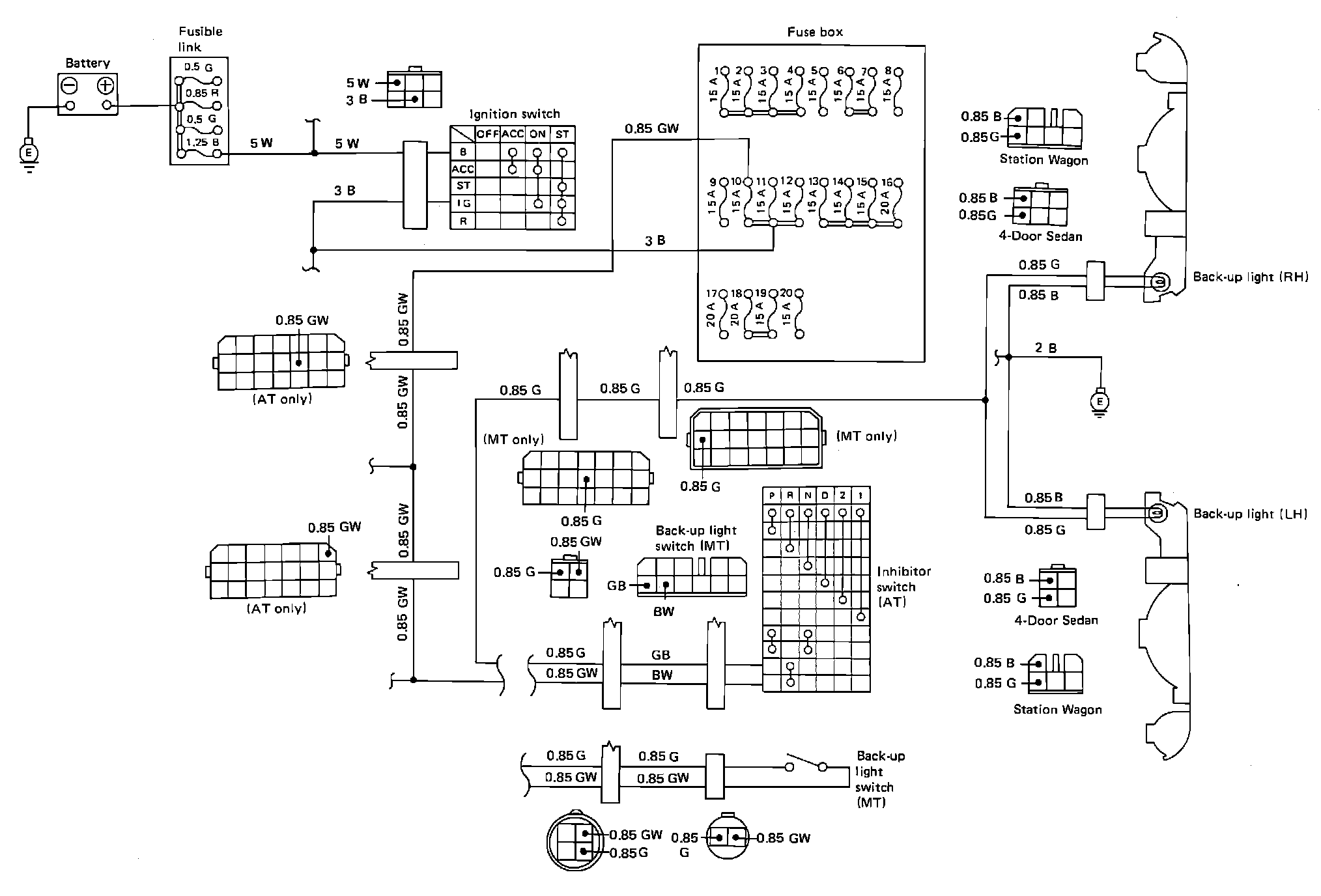 Fig. 22 Backup Lamp Wiring Circuit. Models Exc. XT: