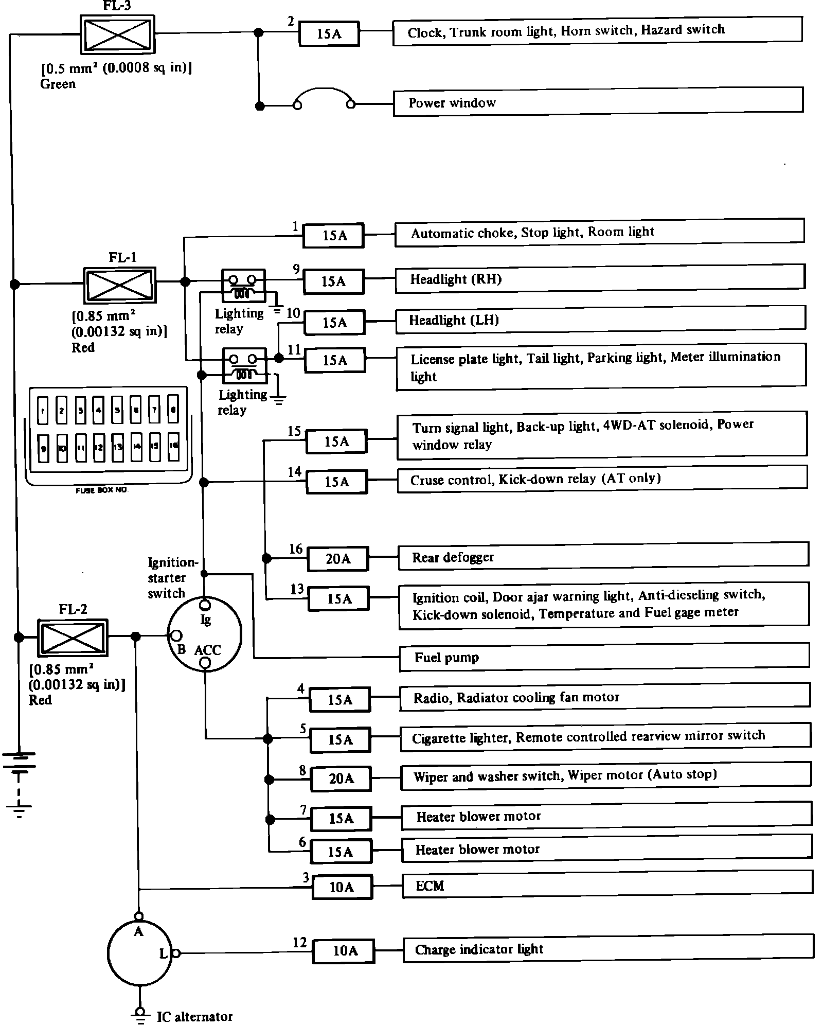 Fig. 2 Fuse Panel & Power Distribution. 1984 Exc. Turbo: