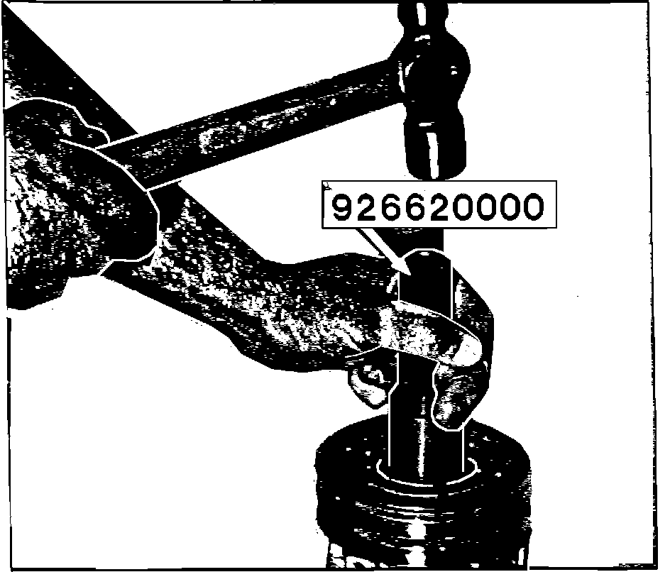 7) Apply a film of refrigerant oil on the boss portion of the compressor and place the pulley/bearing assembly onto the compressor, starting it squarely by hand. Place Subaru special service tool (P/N 926620000, pulley driver) onto the pulley/bearing assembly and tap with a hammer until the snap ring groove is fully exposed and the pulley/bearing assembly is fully seated. See Figure 5.