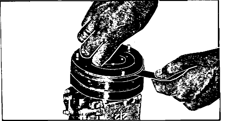 9) Install the shims and the clutch hub. Hold the clutch hub firmly against the compressor shaft.