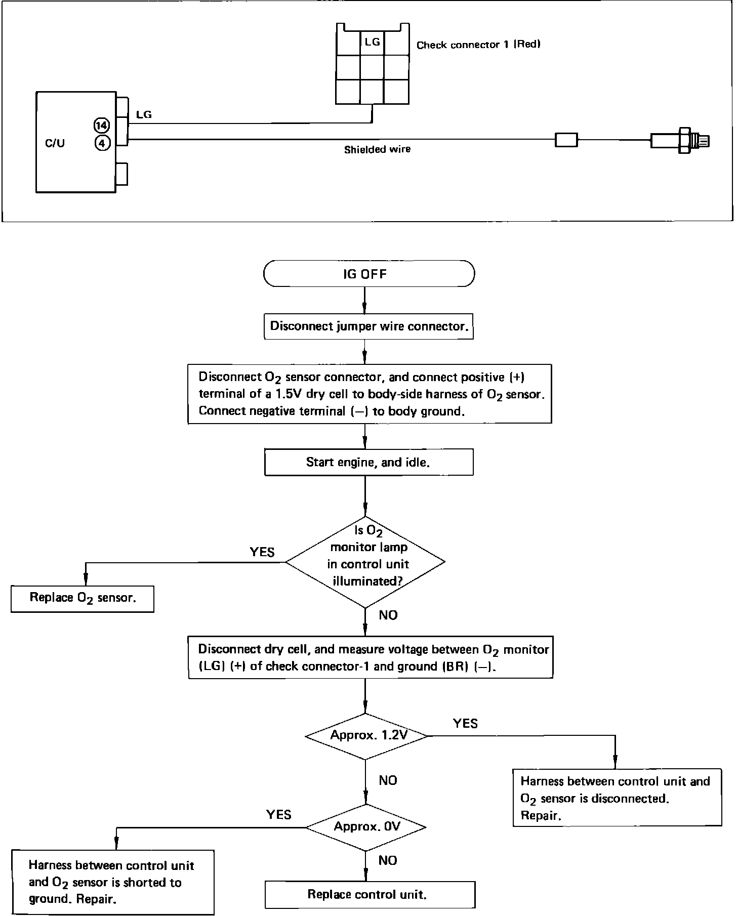 Fig. 16 EGI system troubleshooting chart. Checking oxygen sensor circuit (trouble code 32).: