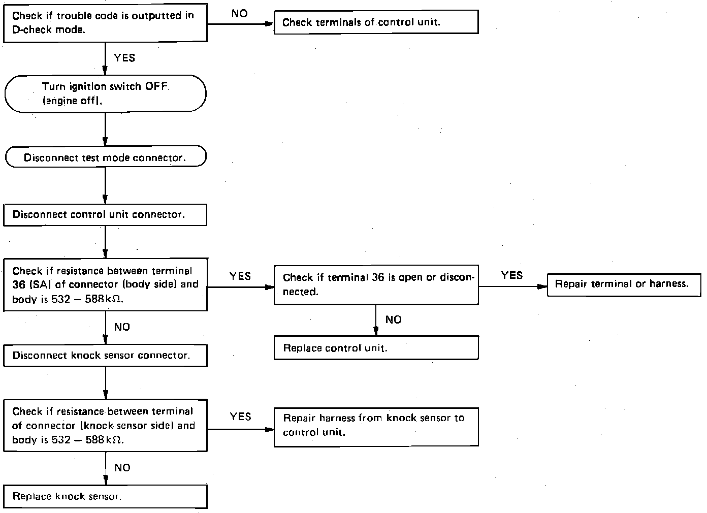 A faulty knock sensor will set code 22 in the on-board diagnostic system. Refer to the schematic diagram and test the sensor with the diagnostic chart.